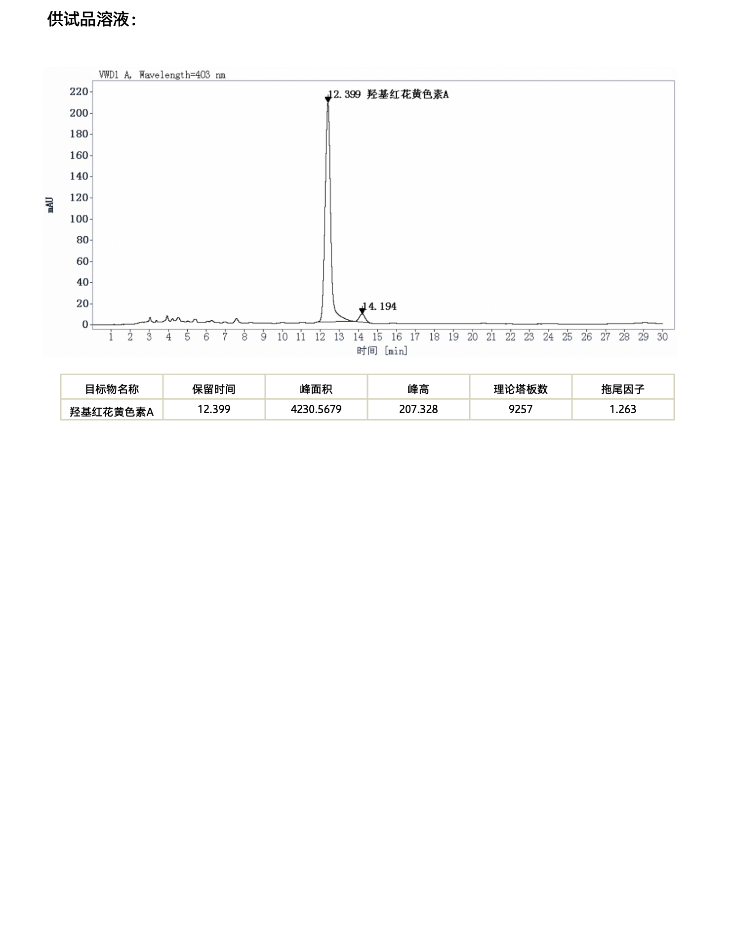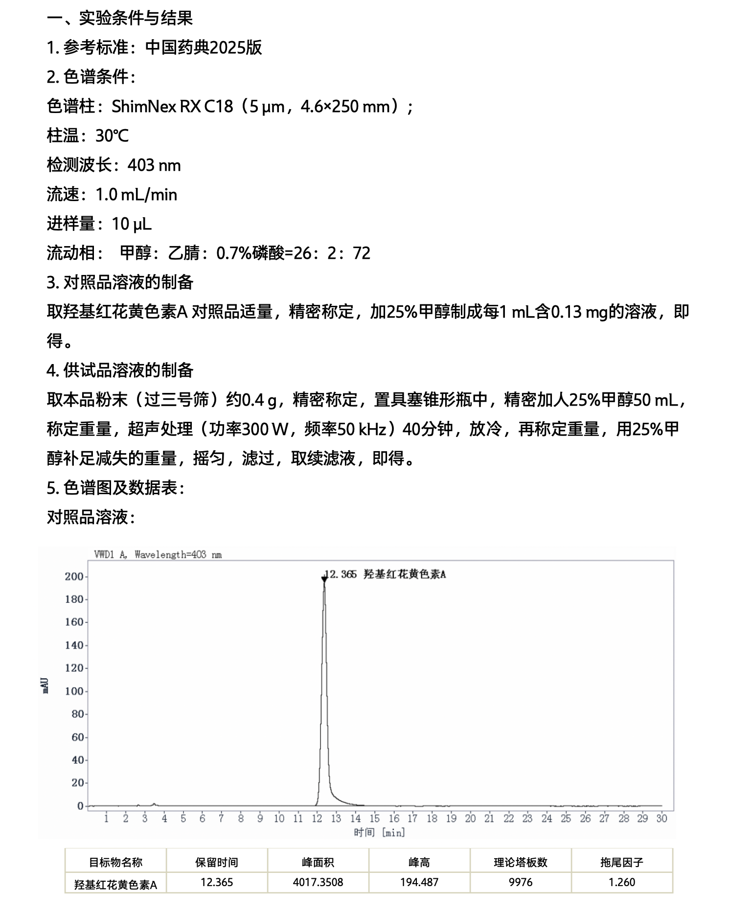 红花中羟基红花黄色素A的测定