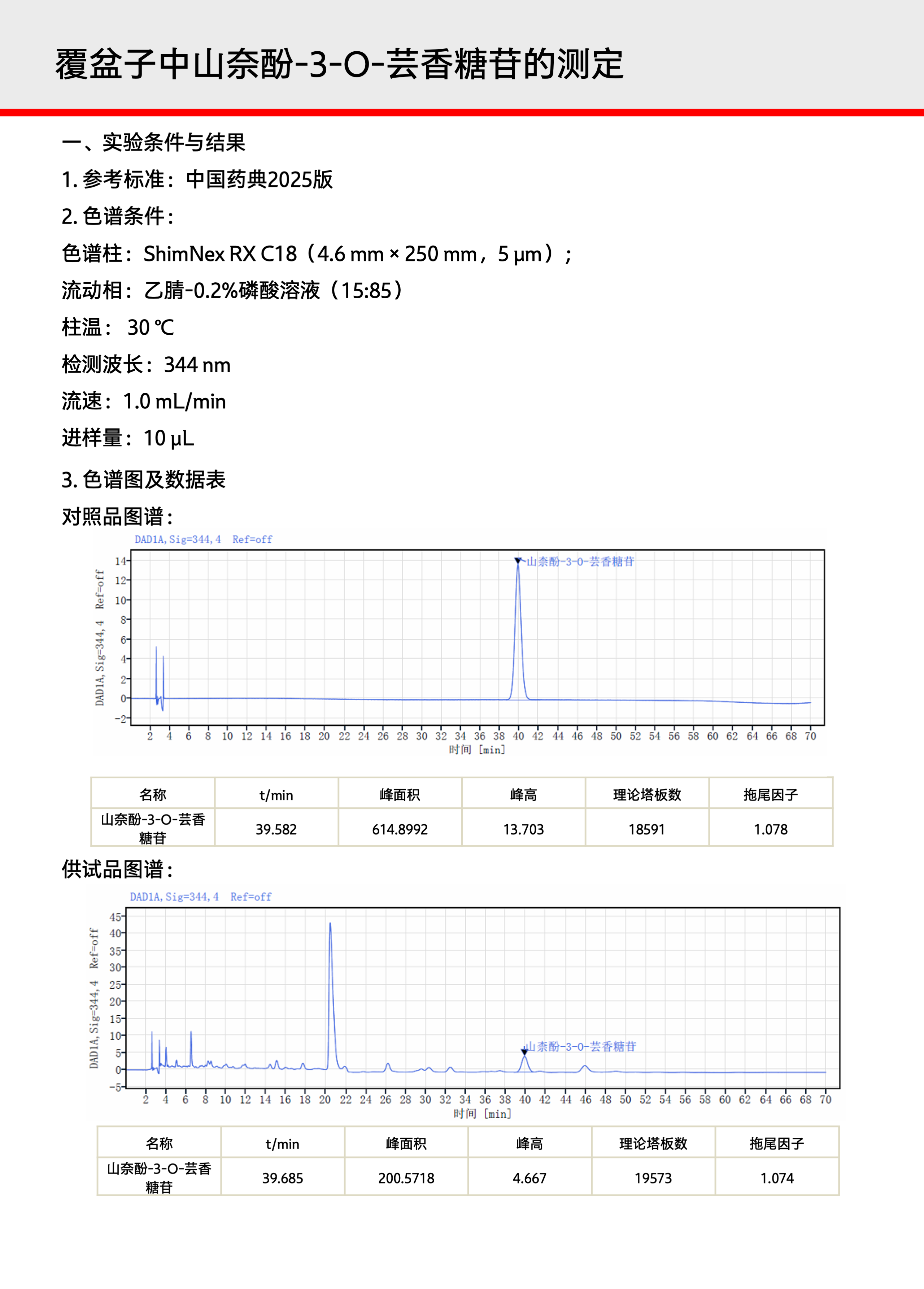 覆盆子中山奈酚-3-O-芸香糖苷的测定